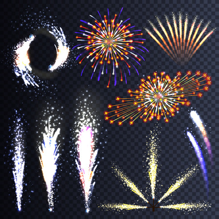 さまざまなスパーク リング形および花火の絵文字で破裂お祭り柄花火を設定します 花火の分離された抽象的なベクトル図とパーティーは楽しい花火の祭典休日ベクトル記号です のイラスト素材 ベクタ Image
